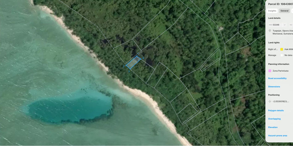 Situated along the highly desired Mapadeggat–Telescopes coastline, this rare 460 m² freehold beachfront parcel offers front-row access to one of the Mentawai’s most iconic surf zones. Just minutes by boat from Mapadeggat Beach and only 11 minutes from Tuapejat Harbor, the location provides exceptional convenience compared to most remote Mentawai sites, while still retaining complete natural privacy surrounded by ocean, jungle, and pristine shoreline.
