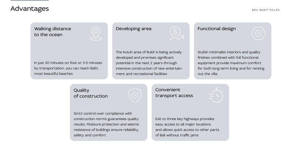 Just a leisurely 20-minute stroll or brief 3-5 minute drive transports you to some of Bali's most breathtaking beaches. Positioned in the rapidly developing "Kutuh" area of Bukit, these villas promise significant investment potential as the neighborhood blossoms with new entertainment and leisure facilities over the next two years.