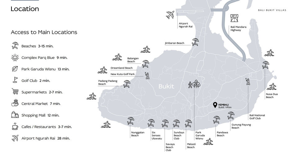 Kembali Bukit's strategic location, with access to three key highways, provides seamless connectivity to Bali's most desirable destinations while bypassing traffic congestion.