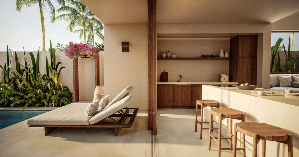 Each villa is crafted with a vision of natural elegance, combining tropical architecture with contemporary design. Thoughtfully curated interiors enhance a sense of well-being, featuring spacious living areas with double-volume ceilings, a dedicated home office, and an open-plan kitchen and dining space that flows effortlessly into the outdoors. The villas boast premium wellness amenities, an infinity pool and optional extras including a Swedish-style sauna, ice bath and jacuzzi. The rooftop terrace provides an idyllic setting for sunset views and peaceful retreats.